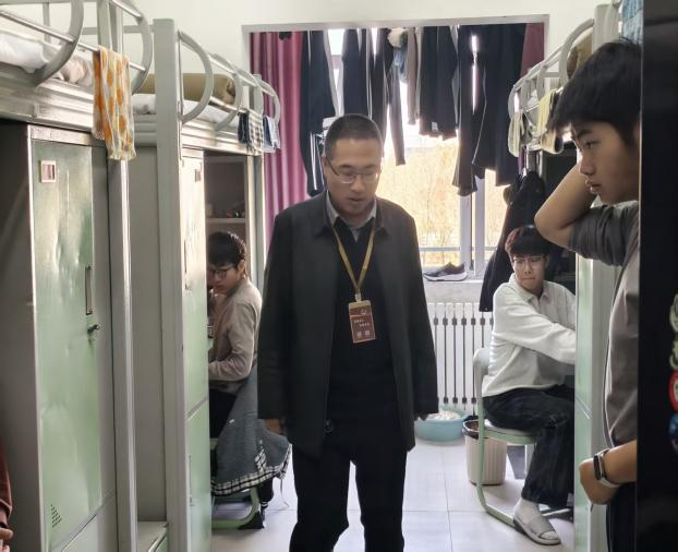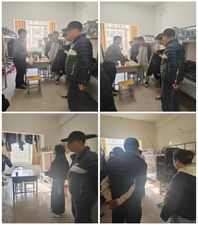 中午,主管副校长、学生办主任及副主任带领全体班主任、辅导员深入各宿舍,围绕内务卫生、遵章守纪、文化建设、人际关系等关键指标开展全面检查。检查过程中,各班班主任、辅导员细致查看了宿舍内务整理、物品摆放、卫生保洁等情况,对环境整洁、氛围融洽、文化建设有特色的宿舍予以充分肯定,同时对存在问题的宿舍现场提出整改要求,明确整改时限。