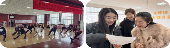 随后,姜曼经理针对教职工肩颈劳损问题,现场示范教学办公室肩颈放松操,对每个动作要领进行细致的分解;实训学生与企业专业人员共同开展健康检测体验,通过体成分分析仪解读体脂率、肌肉量等指标,借助超声骨密度检测仪普及骨密度保养与骨质疏松预防知识,并提供个性化健康建议。