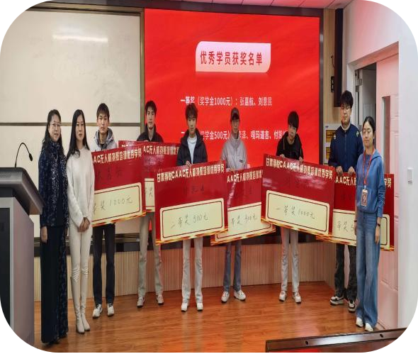 本次表彰大会旨在总结2025年11月启动的无人机CAAC执照专项培训工作成果。培训期间,依托企业优质师资与先进实训设备,开展理论教学、模拟飞行、实操演练等系统化课程。参训学员顶住学业压力,克服天气、设备适应等多重挑战,刻苦钻研、勤加练习,展现出优良的专业素养与拼搏精神。经严格考核,最终评选出6名成绩优异的优秀学员,现场为其颁发荣誉证书及300至1000元不等的专项奖学金。获奖学员代表发言,分享学习心得并表达深耕专业的决心。
